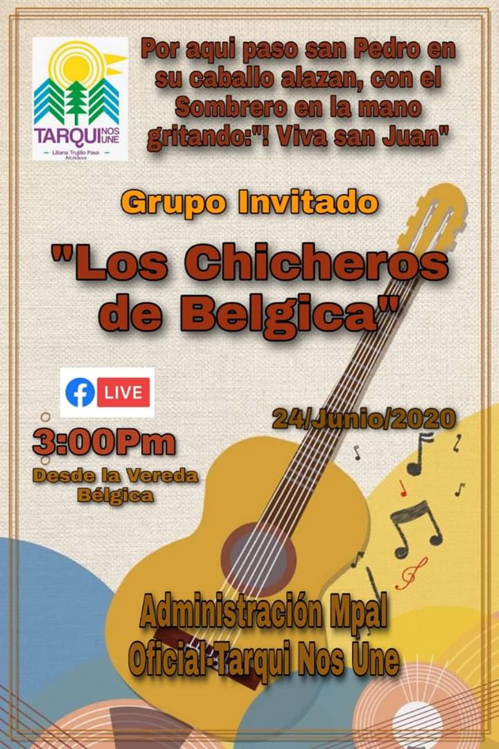 El miércoles 24 de junio, día de San Juan, el recorrido cultural se desplazó hasta la vereda Bélgica para compartir con uno de los grupos de música campesina más tradicionales de Tarqui, como son los “Chicheros de Bélgica”. Su música alegró la tarde del Día de San Juan que en el amanecer había tenido la alborada con la banda municipal y el equipo de trabajo de la Alcaldía que realizaron el recorrido por las principales calles del municipio llevando la música propia de esta época de fiestas, este año de una forma diferente por la situación ocasionada por el Covid-19.