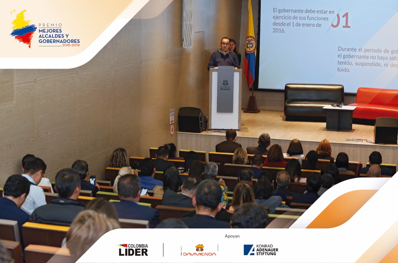 En la cuarta versión del premio Mejores Alcaldes y Gobernadores 2016 – 2019 los 1.101 municipios y los 32 departamentos del país fueron evaluados por Colombia Líder con el apoyo técnico de la Universidad del Rosario agrupados en 8 grandes categorías; 6 para municipios y 2 para departamentos.
