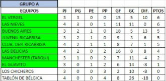 El Vergel y Las Nieves comandan la tabla de posiciones del grupo A que fue el que tuvo acción este fin de semana.